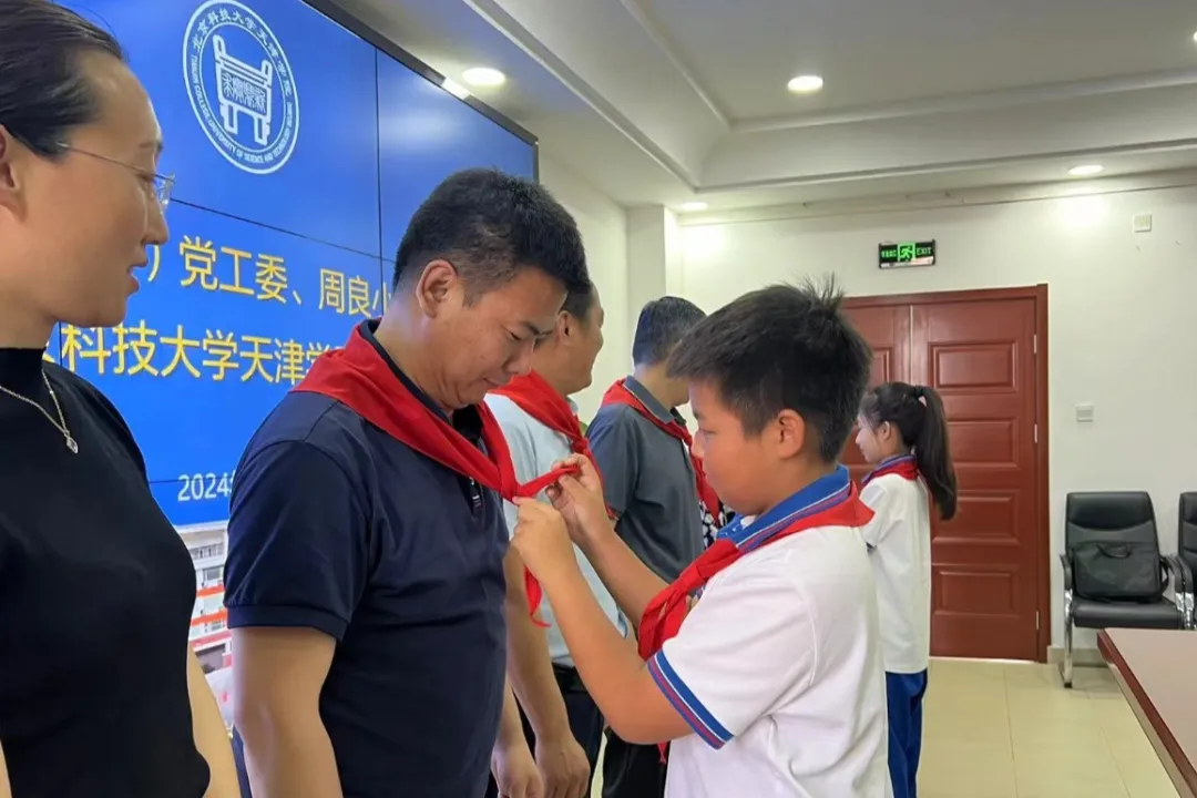 周良小学“周恩来班”学生代表为bevitor伟德国际1946官网领导佩戴红领巾
