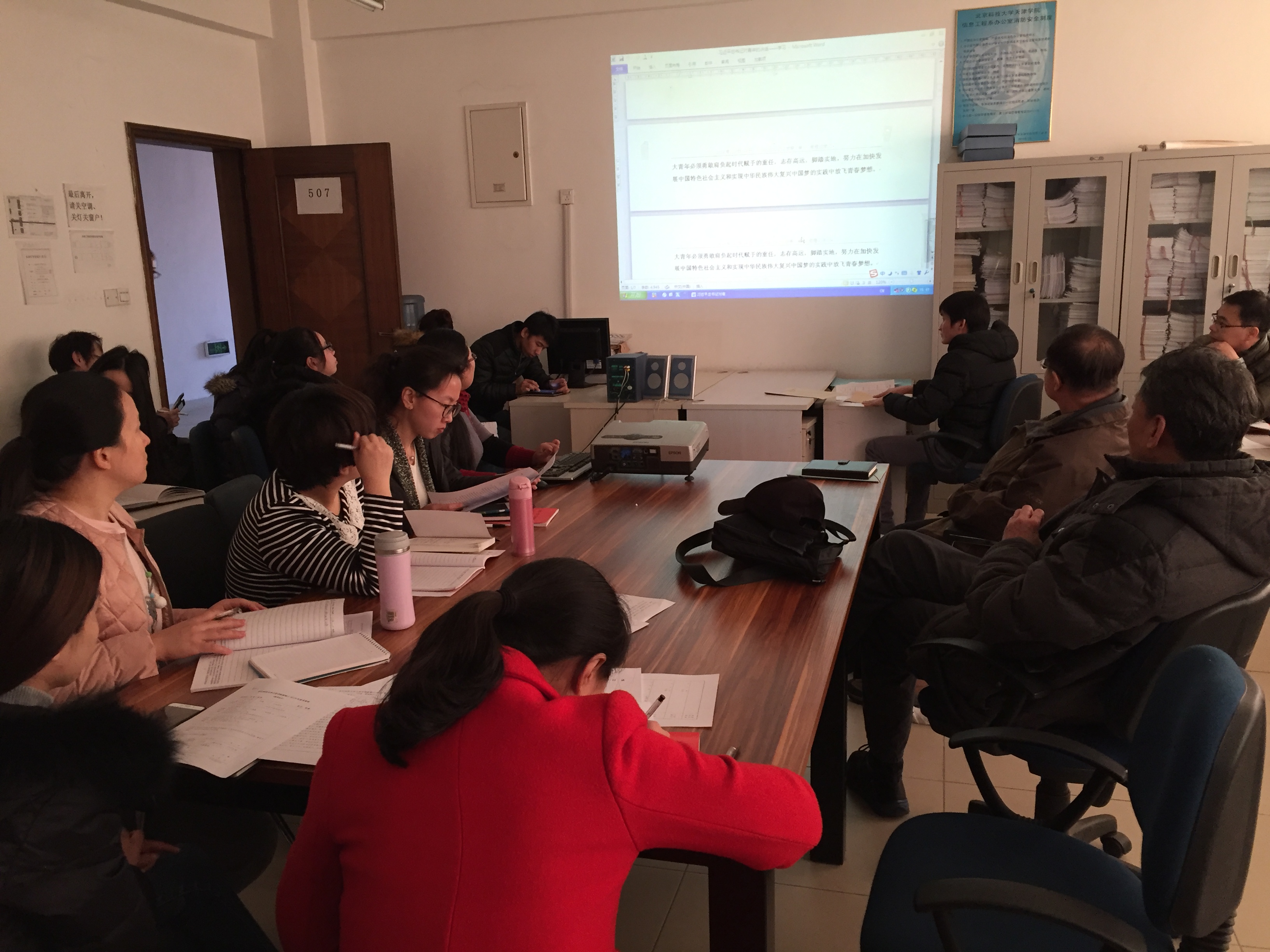 下午三点三十信息工程系教师理论学习在行政楼507如期举行,信息工程系系主任许学东同志、党总支书记柯瑜同志以及信息系教职员工参加会议,本次会议由信息工程系党总支书记柯瑜同志主持。