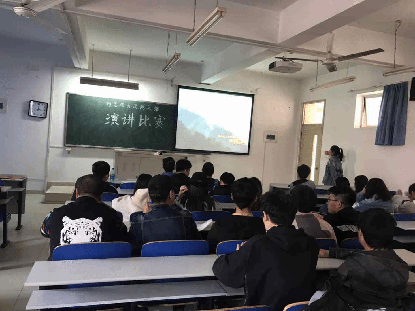2019年4月12日,机械工程系物流1801团支部在8教206开展了“致敬,为祖国献身的英雄之四川凉山消防英雄”主题团日演讲活动。活动主要结合四川大凉山失火,在救火中牺牲的消防人员展开活动进行演讲比赛,以此对为祖国献身的英雄致敬。