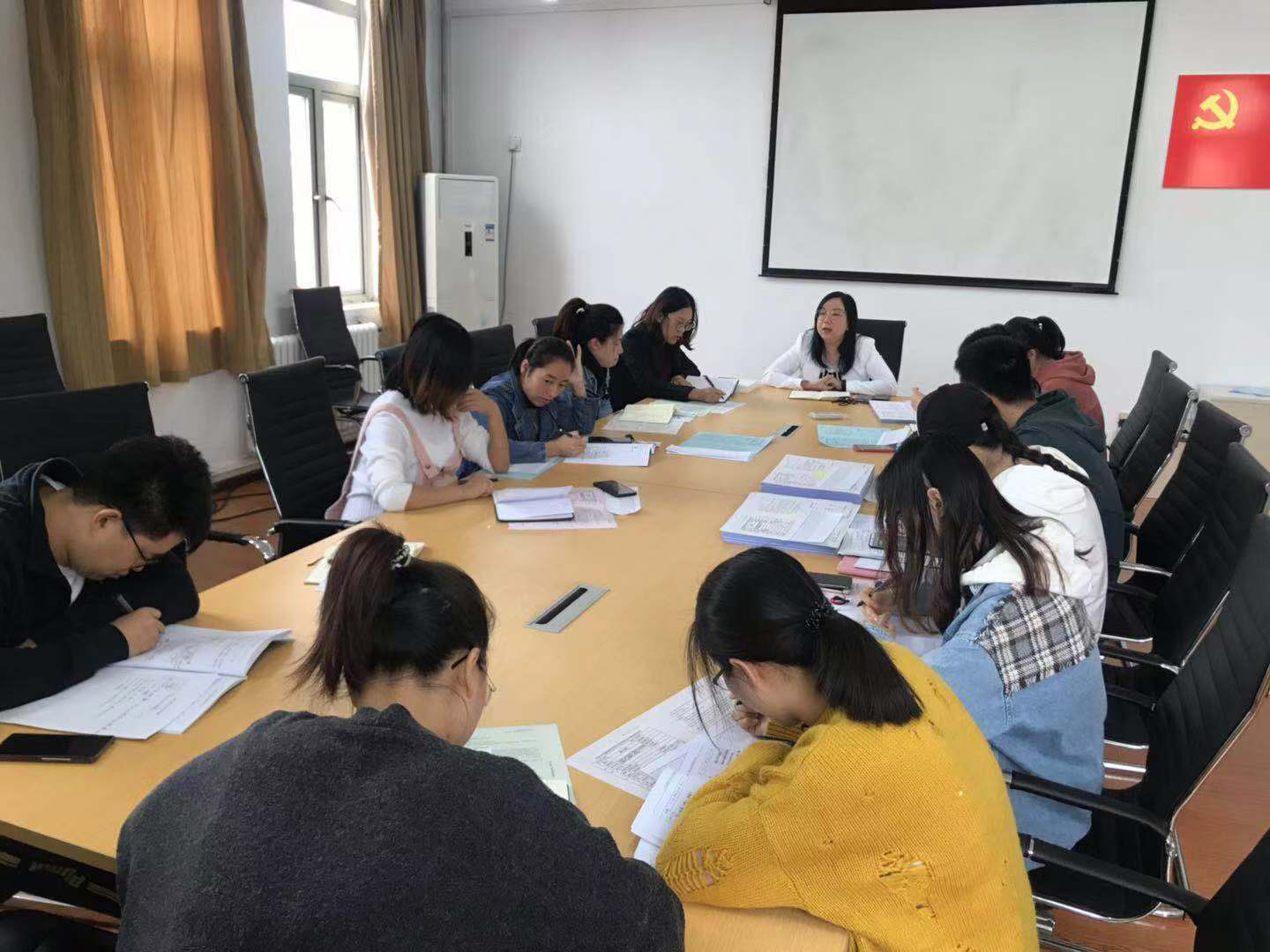 招就处副处长冯海燕老师就2020届毕业生校园双选会相关事宜进行宣讲,她指出辅导员应当应该充分了解、掌握每一位学生的就业需求,加强对学生的就业指导,及时发布招聘信息,引导学生认清当前就业形式,鼓励学生参加学院组织的毕业生双选会,从而增强就业意识、共享就业信息、拓宽就业渠道。