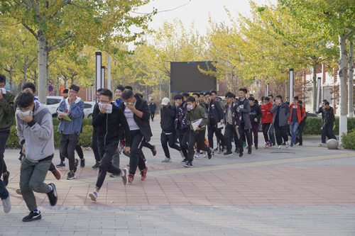为迎接2018年全国消防安全宣传月,贯彻落实党的十九大关于“树立安全发展理念,弘扬生命至上、安全第一的思想”重要指示精神,提升全院师生员工消防安全意识,积累应急疏散、消防救助、应急组织等实战经验,切实做好学院的消防安全工作,学院保卫处联合京津形成派出所及学院其他相关部门,在全院范围内组织开展以“和谐校园你我共享,平安校园师生共建”为主题的“119”消防安全宣传月系列活动。11月7日下午消防演练活动圆满举办、“119”消防宣传月正式启动。学院党委委员、保卫处处长何国钧、京津新城派出所丁玉东警官、保卫处副处长董朋山、学生处副处长田勇、后勤处副处长刘杰、保卫处副处长周少华、基建产业处柳明慧老师出席此次活动,各院系学生代表、新入职教职工代表、后勤员工代表共400余人参加了此次演练。