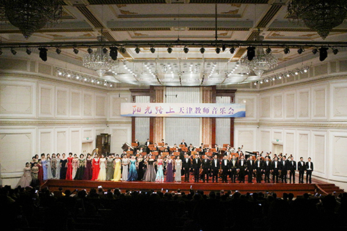 本场音乐会是由天津市教委、天津交响乐团在第34个教师节来临之际,为全市美育工作者精心准备的一份节日礼物。以往的教师节音乐会上,教师群体多作为特邀观众走进现场欣赏演出,而这台“阳光路上”音乐会则别出心裁,将48名美育教师代表请上舞台。演出现场,在天津交响乐团的伴奏下,教师们以联唱的形式带来了《阳光路上》《乘着歌声的翅膀》《为你歌唱》《亲吻祖国》《茉莉花》《在希望的田野上》《不忘初心》《歌唱祖国》等经典作品,他们的歌声青春勃发、激情飞扬,唱出了天津美育工作者的自信与风采。