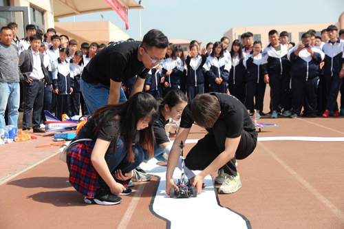 为落实新时代天津高校思想政治工作改革攻坚动员部署会会议精神,深入学习宣传贯彻习近平新时代中国特色社会主义思想,推进社会主义核心价值观的实践养成,加强红色文化教育,引导广大学生在实践体验中深入学习领悟习近平新时代中国特色社会主义思想的伟大历史成就,2018年5月4日上午,伟德官网信息工程学院组织智能车团队与无人机团队队员赴天津市宝坻区职业教育与成人教育中心开展智能车与无人机科技展示。