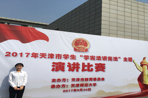 2017年天津市学生“学宪法讲宪法”主题演讲比赛中,伟德官网法律系法学1503班学生陈琳以《沐浴在宪法的阳光下》主题演讲荣获大赛一等奖。