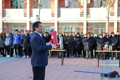活动首先进行模拟逃生演练,各位同学和老师在演练中展现了良好的应急疏散和自救能力,大家在疏散人员指挥下按疏散线路有序进行撤离,迅速到达指定安全地带集合。随后保卫处长何国钧为在场人员进行了消防破拆工具的使用展示和讲解,他具体讲解了各样破拆工具的具体用途。安保人员为大家展示限时着装和消防水带使用展示,安保人员在指定时间内迅速完成战斗服穿着、水带展开、水带连接等一些列操作,精彩的展示赢得阵阵掌声。最后何国钧处长为师生讲解灭火器使用方法,使用注意事项等内容。整个演练过程组织有序、分工到位、有条不紊,活动圆满结束。