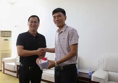 王辉区长向学院赠送纪念品