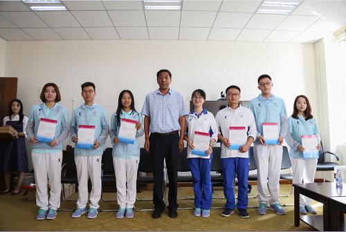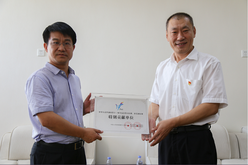 王辉区长代表区委、区政府向伟德官网赠送奖牌和纪念品。韩建强书记向伟德官网团委赠送全运会期间志愿者的志愿服务纪念光盘。张玉森局长向伟德官网志愿者督导教师和志愿者代表颁发感谢信。