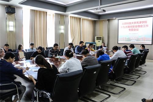 为深入贯彻落实市委、市政府和天津市教育两委相关部署,做好校园安全稳定工作,为党的十九大胜利召开营造安全稳定的校园环境,学院于9月27号下午在行政楼302会议室召开bevitor伟德国际1946官网安全稳定工作专题会议。学院领导班子成员,各二级单位负责人参加了此次会议。