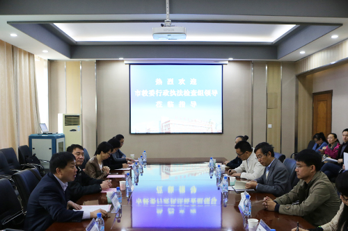 4月19日,天津市教委行政执法检查组在市教委法制处处长殷宏、发展规划处处长张卫国同志的带领下一行7人来伟德官网进行工作检查。伟德官网院长郭景文,党委书记王斌,副院长曾广晟,财务总监王俊敏,党委副书记叶振楠、孟菲菲及相关部门负责人参加了会议,会议由市教委发展规划处处长张卫国主持。