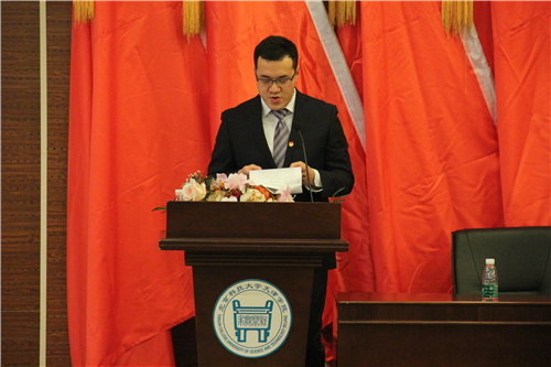 天津团市委学校部副部长赵东亚发表讲话。他首先肯定了伟德官网第一次团代会以来各项事业所取得的长足进展。并对广大团员提出几点希望:希望广大团员坚定理想信念,担负起实现中国梦的历史重任;希望坚持知行合一,掌握过硬专业能力;希望各级团组织加强自身建设,确保共青团事业长期发展。