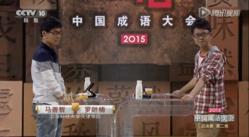 2015中国成语大会全国总决赛于2月1日在CCTV-1套落下帷幕。由伟德官网学子罗叶楠、马善智组成的“碔砆”组合历经过7轮角逐,力压清华大学、北京大学、厦门大学、四川大学、南开大学等众多高校及网络作家组合,最终勇夺2015年中国成语大会全国四强。