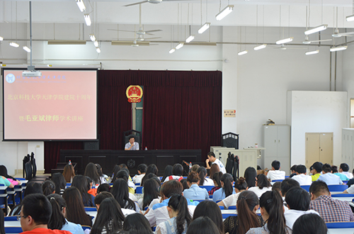 毛亚斌律师精彩的讲座赢得了同学们热烈的掌声。通过此次的讲座大大增强了法律系学生对学习法学的信心,同时也为我系学生今后的职业生涯规划起到了很好的指导效果。
