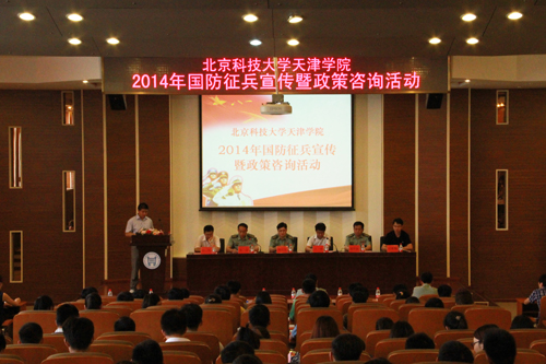 为贯彻落实《兵役法》、《征兵工作条例》、国防部征兵办公室《关于扎实做好2014年征兵准备工作的通知》及天津市相关政策文件要求,6月5日下午3:30,伟德官网2014年国防征兵宣传暨政策咨询活动在学术报告厅举行。宝坻区委常委、区武装部政委陈高龙、区武装部部长温华战、副部长徐进、伟德官网党委书记王斌、党委副书记白亮、学生处处长叶振楠出席活动。活动由伟德官网武装部副部长罗富臣主持。