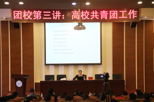 团课正式开始后,刘巍老师首先介绍了高校共青团工作的特点:立足青年、具有独特性,面向社会、具有开放性,主题新颖、具有时政性,要求适应、具有可行性。随后刘书记通过生动的实例,从七个方面展开讲解了高校共青团工作的主要内容。关于“自身建设”和“思想政治教育工作”,她讲解到高校共青团应以组织建设为基础,以思想建设为核心,以作风建设为灵魂,同时用创新的模式,拓展多种方式加强共青团的思想政治教育工作;在校园文化建设方面,则应该以学校传统为基点,陶冶道德情操;之后刘书记又从不同角度讲述共青团校园文化建设、科技创新工作、社会实践工作、青年志愿者服务工作和青年学生就业创业工作,在服务青年学生就业创业工作方面,她更希望高校能够做到引导青年学生转变就业观念,帮助青年学生做好就业准备,培养青年学生创业能力和创新精神。而对于高校共青团工作的创新方法,刘书记提到要在传统活动中注入新形式、烘托新意境、注入新内容和新手段。在讲座中刘书记现场组织了一项互动游戏——孤岛求生,并通过游戏引入高校共青团工作开展中的问题,现场同学积极参与,在享受娱乐的同时也领会到了创新与合作对共青团工作不可或缺的作用。伴随着热烈的掌声本次团课圆满结束!