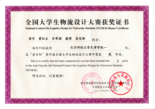 (注:《关于表彰“安吉杯”第四届全国大学生物流设计大赛获奖单位和个人的决定》官方网址详见: