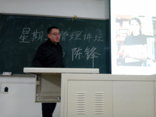 为开阔学生视野,积极营造浓厚的校园学术文化氛围,管理系每学期坚持举办星期二管理讲坛,从高校和企业聘请专业人士来校做讲座。11月13日晚六点半,毕业于德国法兰克福歌德大学商学硕士(金融方向)的管理系陈锋老师在8教201做本学期第一期专题讲座-----《改善你的学习》