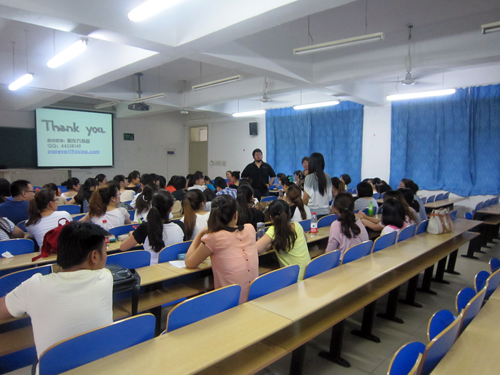 上午,毕业于北京语言大学的周玲老师针对对外汉语教学进行了题为“三尺讲台 一站到底”的讲演。她清楚地分析了对外汉语市场现状,规划了学生对外汉语职业前景,详尽地讲述了对外汉语资格获取流程及注意事项,并对对外汉语教学方法及技巧分内容、分课型进行了案例演示,让同学们了解了对外汉语职业的整体情况以及课堂驾驭的具体技能,给同学们即将开始的暑期实习与实践和将来就业带来了新的思路。