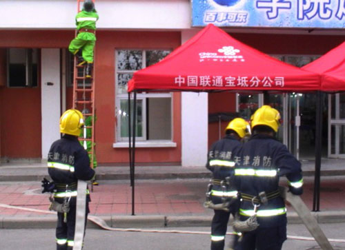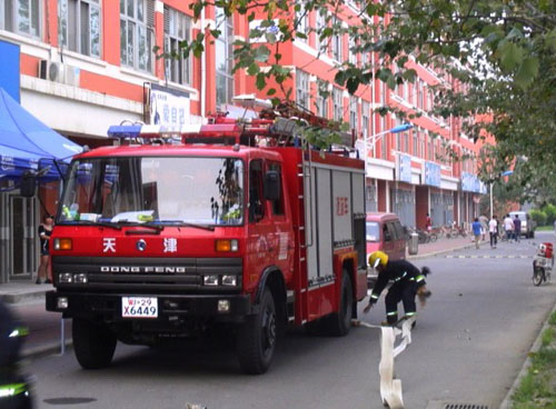 根据新生入学期间人员流动量大、消防意识层次不齐、各类违规物品多、用电量大、突发事件多等特点,保卫处结合公安宝坻消防支队九园中队于8月30日下午15时,在伟德官网一斋开展了一次灭火救援消防演习。