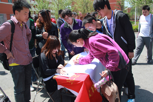 4月25日中午,由心理咨询中心主办、心理协会承办的主题为“微生活 微幸福”的第六届心理活动月在三食堂门口开幕。