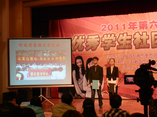 根据共青团天津市委员会《关于开展第六届天津市“优秀学生社团”及“优秀学生社团标兵”评选活动的通知》要求,为进一步弘扬健康向上的校园文化,推动我市学生社团的制度化、规范化建设,全面提高学生社团的整体工作水平,促进我市青年学生的全面发展,团市委、市学联于日前开展第六届天津市“优秀学生社团标兵”评选活动。