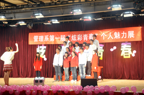 为响应学院团委注重大学生综合素质拓展的号召,管理系分团委积极开展各项活动,旨在拓展学生素质,突显个性发展。12月1日晚,管理系第一届“炫彩青春”个人魅力展在学生活动中心举行。