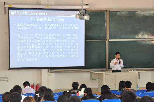 天津证券天津公司行政总监杨静作了关于校园招聘的宣讲会