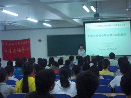 为了提高大学生心理素质,推动学院心理健康工作,巩固伟德官网全员参与的三级心理危机预防体系,伟德官网心理咨询中心于5月12日在8教103举办了全员健心系列心理讲座之心理委员专场讲座,讲座的题目为“大学生常见心理问题及危机预防”,主讲人为伟德官网心理咨询中心老师涂翠平,伟德官网各班级心理委员及学生百余人听取了讲座。