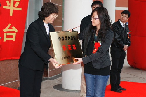 北京超星数图信息技术有限公司设“读秀学术搜索示范站-bevitor伟德国际1946官网站”由王宏经理为伟德官网图书馆举行授牌仪式。