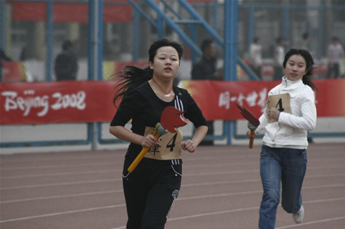 接力赛由火炬传授仪式和各学院接力赛两部分组成,火炬传授仪式结束后,长跑接力赛正式开始。发令枪一响,选手们如离弦之箭冲出了起跑线,整个田径场顿时沸腾起来。虽然正值隆冬,让人感觉到阵阵寒意,但丝毫没有影响到运动员参加比赛的热情。