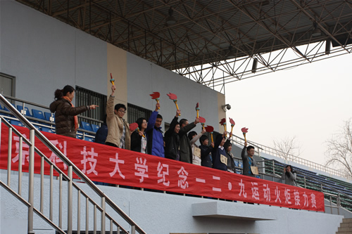 为纪念“一二·九”学生运动,培养学生爱国主义精神,贯彻落实学生阳光体育运动,加强各学院之间的团结和友谊,在校本部体委的精心策划、组织下,12月9日下午4点,在校本部田径场隆重举行了“一二·九”火炬接力赛。由11名师生运动员代表组成的伟德官网代表队参加比赛并最终取得第三名的佳绩。