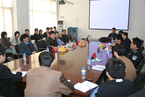 贾处长凭借自己十年的学生口工作经验和八年的保卫工作经验,与在场的人员分享了对于保卫工作的见解和体会。贾处长首先介绍了保卫工作的概念,不仅仅是保卫学校的人和事物,维护学校的安定也是很重要的工作内容之一。做好学校保卫工作需要学生处和保卫处的相互配合,本着保护学生和教育学生的原则,来保障学校的安全和学生的安全。学校保卫工作与公安工作有很大的区别,这也就注定了保卫工作的独特性。同时保卫处的工作也要有原则性:服务的原则;法人第一的原则;教育与处理相结合的原则;保护学生安全的原则等等,贾处长以鲜活的事例和有力的证明为在场的人员全面的讲解了如何在原则下做好保卫工作。有了工作原则,保卫工作也有需要有明确的责任体系:领导责任体系;单位责任体系;岗位人员责任体系;和责任追究制度。贾处长还明确提出了为了保障保卫工作的有效开展,条件的保障是必需的,比如消防报警的培训等。