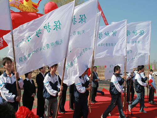 上午9:00,天津市团委副书记毛汉发宣布启动仪式正式开始,首先由农垦集团总公司团委书记汪占琪、天津团市委书记刘道刚为“里自沽青少年绿色家园”揭牌,而后由天津团市委书记刘道刚、宝坻区委副书记贾凤山为“宝坻区青少年生态教育基地”揭牌;随后与会领导为“‘保护母亲河’天津市青少年环保服务队”授旗,宝坻区青年志愿者宣读倡议书,倡议所有人应积极参与环保活动,为保护环境尽自己的一份力;最后市团委书记刘道刚致辞并宣布全市青少年环保节启动。仪式在一阵热烈的掌声中圆满结束。