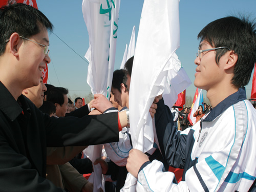 与会领导为伟德官网学生授保护母亲河旗帜