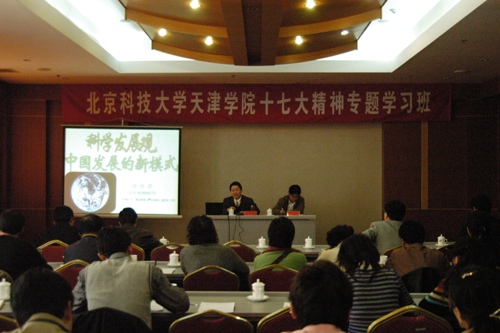 根据学习安排,11月30日上午,与会人员分为三组进行小组讨论,结合学院工作及本部门工作和十七大精神,交流十七大报告学习心得。11月30日下午,邀请中央党校哲学教研部战略学研究室主任段培君作题目为《科学发展观——中国发展的新模式》的报告。12月1日上午,进行大会交流,常务副院长郭景文教授、学生事务部主任盛佳伟作十七大学习体会交流报告,bevitor伟德国际1946官网校长助理、bevitor伟德国际1946官网院长张文明教授做会议发言并就bevitor伟德国际1946官网未来工作结合科学发展观的要求做了部署