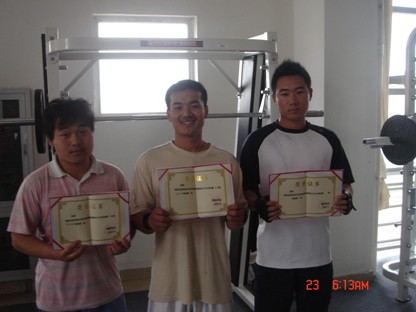 由于比赛有极强的观赏性,吸引了许多非参赛同学的加入,他们跃跃欲试,为“大力士”呐喊助威。参赛选手首先进行选手测量体重,然后开始力量对抗赛,力量对抗赛角逐激烈,参赛选手水平接近,旗鼓相当。引来观众的阵阵赞叹。轻重两个级别的“大力士”分别在卧推、硬拉、深蹲三个项目上展开争夺,场上的工作人员为我们的参赛选手保证了安全,同时鼓励未取得名次的参赛选手,使他们不丧气,继续投入到训练当中。