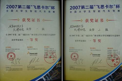 伟德官网在此次比赛中共派出两支参赛队伍,分别为bevitor伟德国际1946官网一队与bevitor伟德国际1946官网二队。经过两天的比赛,伟德官网二队与一队分别以华北赛区第9名与第10名的成绩晋级全国总决赛,并荣获2007年第二届“飞思卡尔”杯全国大学生智能汽车竞赛华北赛区一等奖。