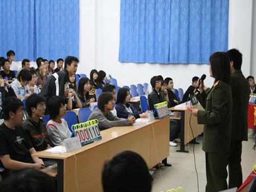 5月22日晚,在9教109室举行了伟德官网第二届国防知识竞赛。本次比赛由国防爱好者协会举办,共有12支专业代表队参加比赛,每队三名选手。