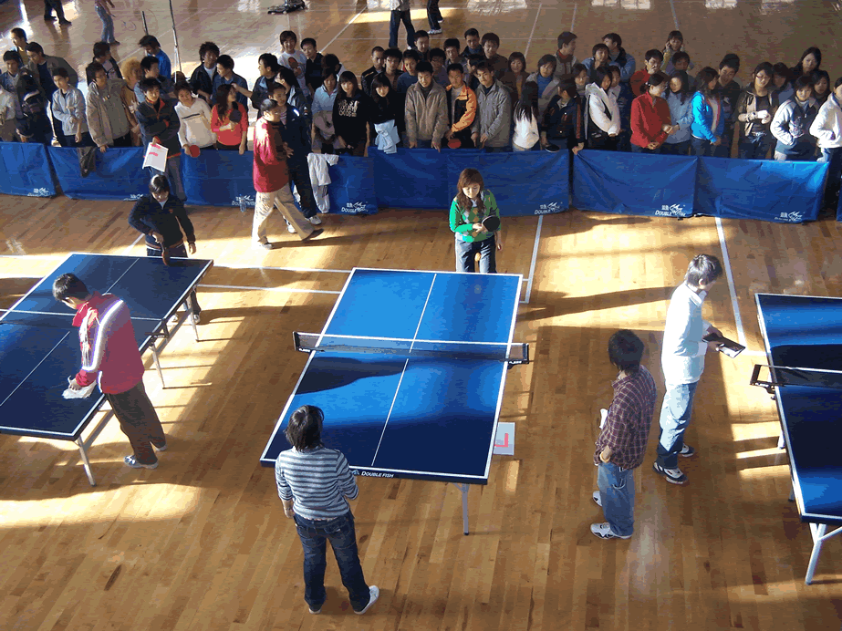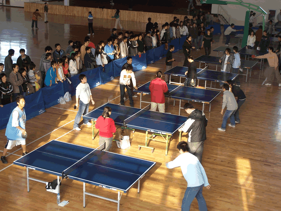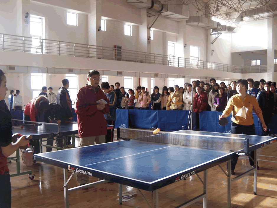 晚7点半,决赛开始。决战双方为物流053班与英语052班,比赛流程分为男单、男双、女单、女双、男单五场。物流053班与英语052班展开了激烈的比赛,决赛刚刚开始,物流053班的选手就在男单比赛中以11:0大比分胜出,随后的男双比赛物流053班也一举胜出,在女单与女双比赛中,英语052班战胜物流053班,比赛尤为激烈。最终,物流053班以总比分3:2获胜,获得本次乒乓球比赛的冠军,英语052班荣获亚军,金融055班获得季军。