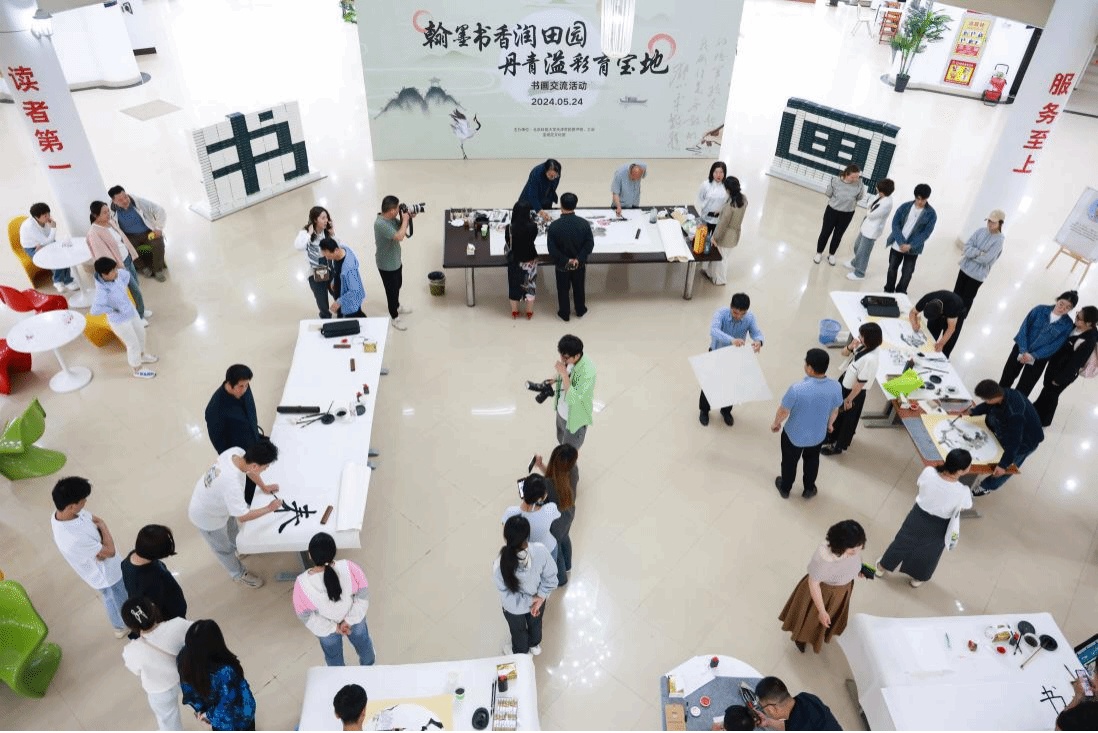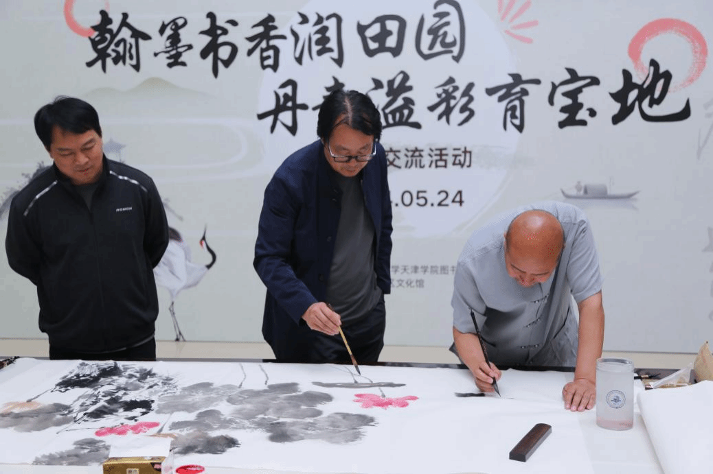为了弘扬中华优秀传统文化,营造热爱国粹、热爱书画艺术的氛围,更好地推动校园文化建设,图书馆联合学院工会、宝坻区文化馆于5月24日下午在社科馆举办“翰墨书香润田园 丹青溢彩育宝地”书画交流活动。宝坻区文化和旅游局副局长张英、bevitor伟德国际1946官网副院长兼财务总监王俊敏、bevitor伟德国际1946官网党委副书记、工会主席郭雅娟、宝坻区文化馆馆长倪芳芳、宝坻区的书画家、文化馆工作人员、图书馆全体馆员以及学院书画爱好者200余人参加了活动。