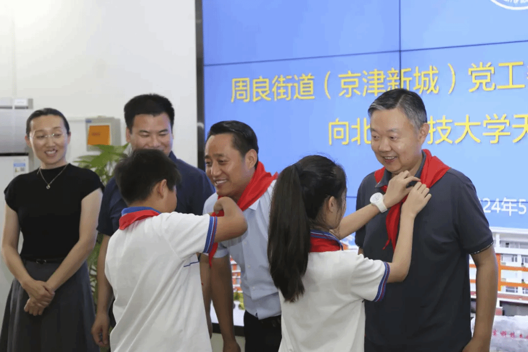 周良小学“周恩来班”学生代表为bevitor伟德国际1946官网领导佩戴红领巾