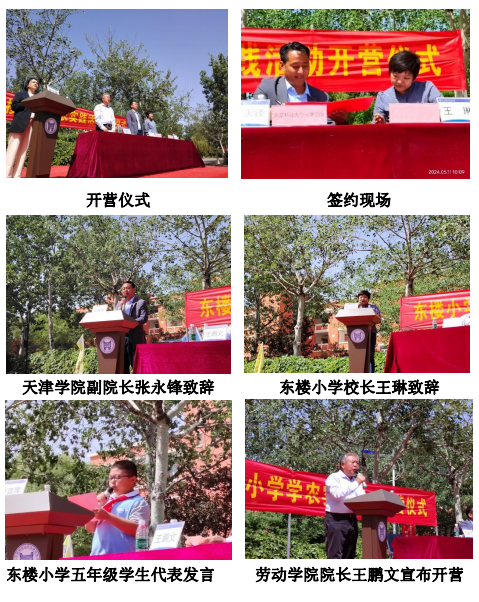 2024年5月11日上午,天津市河西区东楼小学五年级学生学农实践活动在伟德官网鹿鸣园广场正式开营。在学农实践活动开营仪式上,东楼小学与伟德官网签订了“校内外劳动教育共同体协议”,bevitor伟德国际1946官网副院长张永锋、东楼小学校长王琳、劳动学院院长王鹏文及劳动基地副主任杨丽出席了该活动,张永锋副院长与王琳校长在东楼小学五年级330余名师生见证下完成协议签约。开营仪式结束后,300余名祖国的小花朵在伟德官网大学生志愿者的带领下踏上了农事劳动实践的探秘之旅。