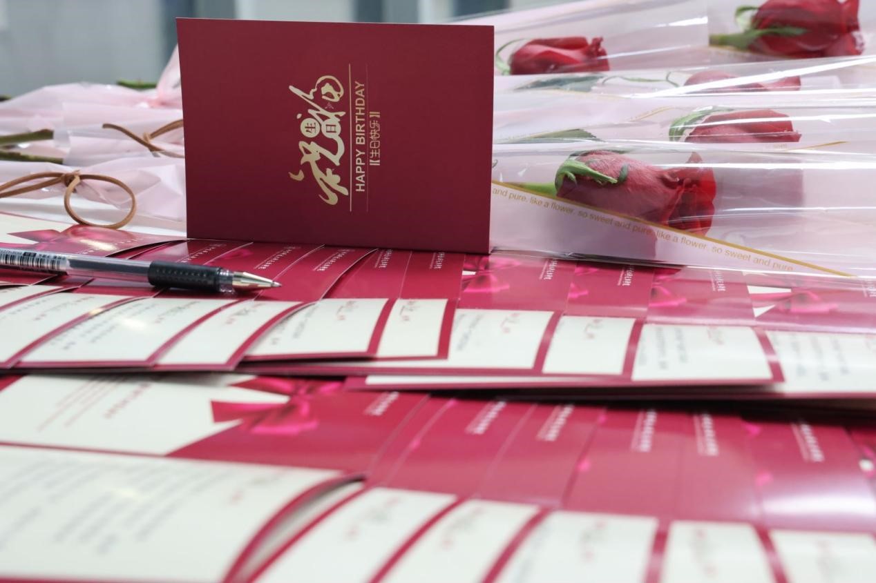 工会准备了蛋糕、水果、鲜花和贺卡等物品,丁煦生院长代表学院为生日教职工送上最诚挚的生日祝福,并对教职工长期以来在教育教学管理一线为学院发展做出的努力和付出表示感谢,希望老师们凝心聚力,为学院高质量发展继续贡献力量。