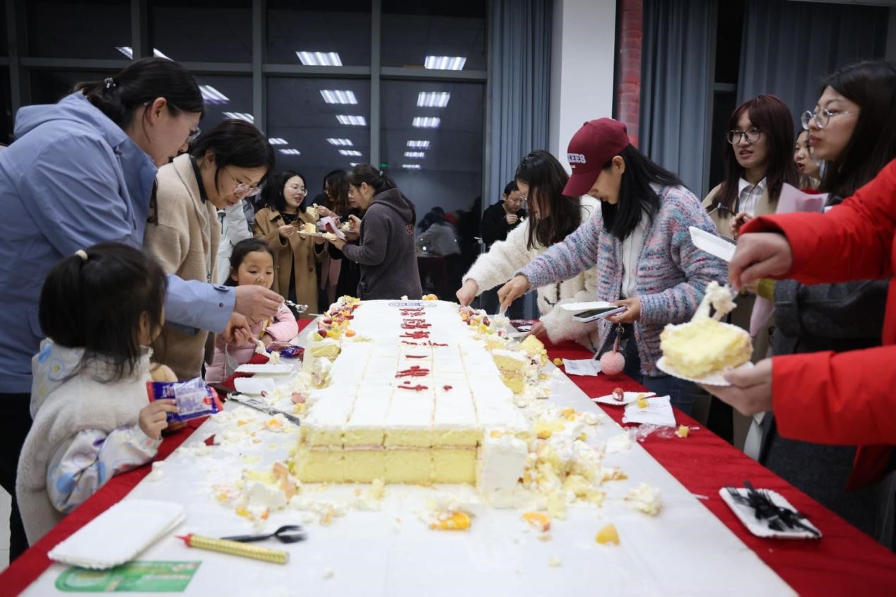 教职工合影留念,共同唱响生日快乐歌,共切生日蛋糕。在温馨欢乐的气氛中,大家品尝蛋糕、水果,分享喜悦,互相送上祝福。此次集体生日会是由工会、后勤处、学院办公室、材环学院共同组织筹办的第一次集体生日活动,学院教职工广泛参与,增强了学院凝聚力,让教职工在学院这个大家庭中快乐工作、幸福生活。