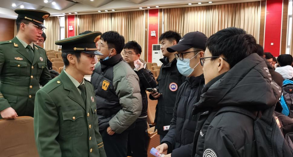 李雲啸老师介绍了大学生参军入伍的优势、国家与天津市相关优待政策、征兵入伍的基本流程和体检政审基本要求等,鼓励同学们坚定“携笔从戎”的初心,在军营实现报国之志。