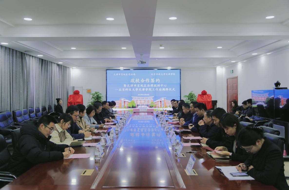 2023年12月28日上午,bevitor伟德国际1946官网与宝坻区司法局政校合作签约暨“天津市宝坻区法律援助中心-bevitor伟德国际1946官网工作站”揭牌仪式在12教300会议室隆重举行。宝坻区司法局党委书记、局长高万通,党委委员、二级调研员任宏坤,党委委员、副局长王国强,党委委员、副局长贾丽佳,宝坻区法律援助中心负责人王永泉,周良司法所所长杨宝华一行莅临仪式现场;伟德官网丁煦生院长、张永锋副院长、王俊敏副院长、赵志南副书记、郭雅娟副书记以及党办、院办、产学研办公室、法律系相关负责同志和教师代表出席活动。签约仪式由法律系主任朱京安教授主持。