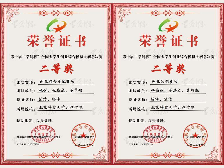 伟德官网该赛事由管理学院牵头组织,多院系积极参与,学生跨院系组队积极备赛、奋勇拼搏,最终6支队伍在创业综合模拟赛项和创业营销赛项中脱颖而出。天津市选拔赛双赛道共有24所高校,116支参赛队伍参加,伟德官网学子荣获市赛一等奖三项,二等奖一项,三等奖两项的佳绩。在管理学院任洁老师和信息工程学院杨宇老师的指导下,双赛道分别有一支队伍进入全国半决赛,最终荣获国家级二等奖的佳绩!
