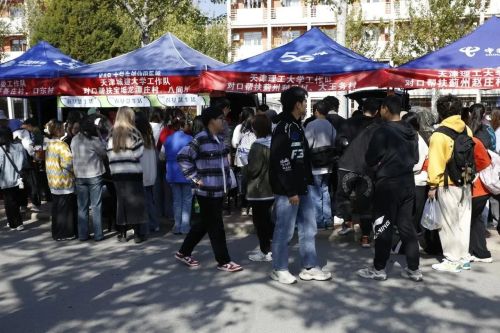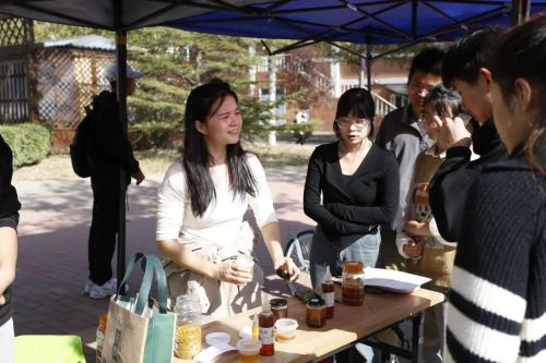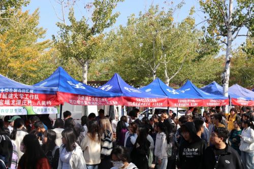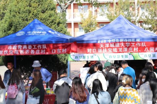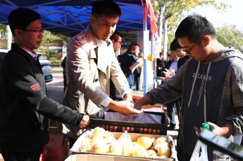 为贯彻落实国家乡村振兴战略,充分发挥高校服务地方经济发展示范作用,在市教育两委的指导下,10月27日伟德官网举办农产品创业集市,天津市教育系统对口扶持的经济薄弱村产品面向全校师生进行集中展销。展销活动中,学院党委书记叶振楠、副书记栗时锋走进各展销摊位,与现场的驻村工作队成员、村干部、学生团队以及参加集市的师生进行交流,详细了解售卖产品特色,询问产品销售情况。伟德官网师生热情参加创业集市、积极选购产品,集市当天参与师生达3000人。