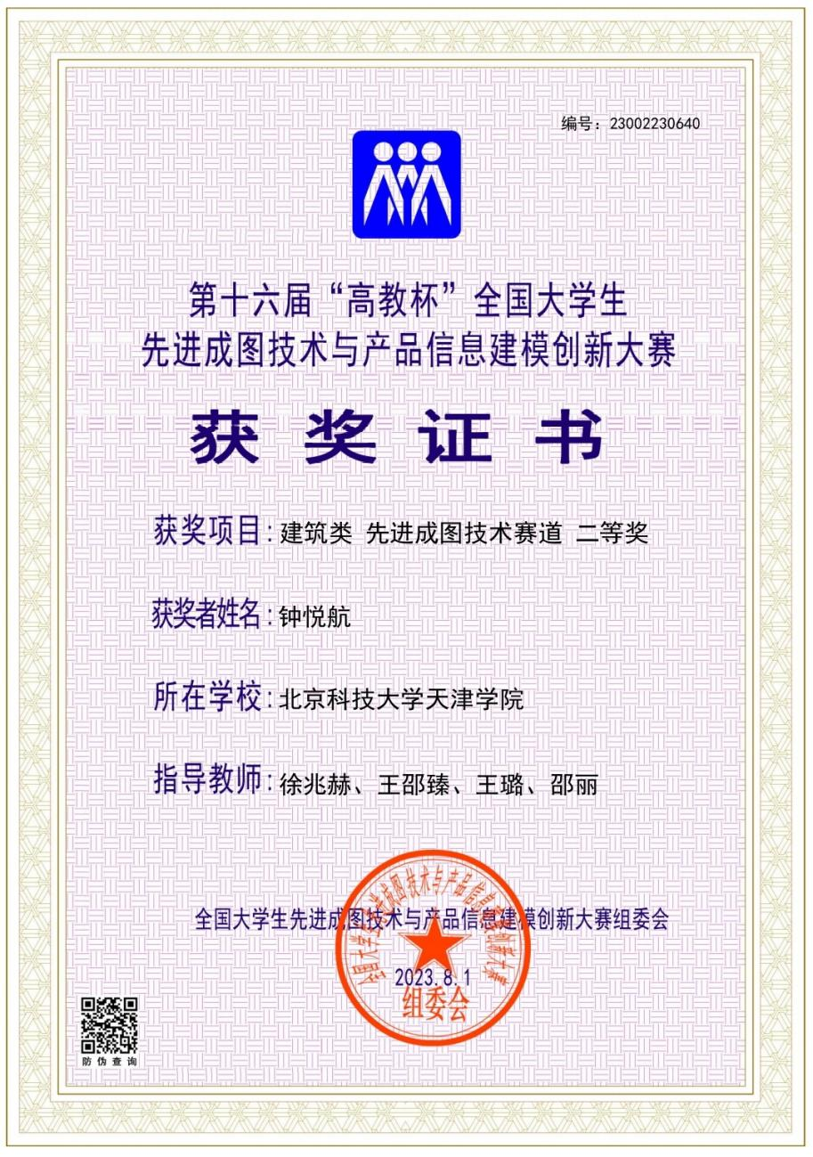 近日,第十六届“高教杯”全国大学生先进成图技术与产品信息建模创新大赛在重庆落下帷幕。伟德官网学生钟悦航(城市建设学院,土木智2101班)荣获建筑类先进成图技术赛道二等奖,指导教师徐兆赫、王邵臻、王璐、邵丽。