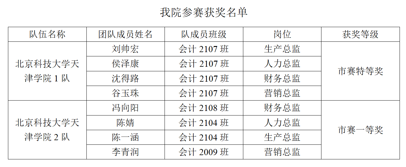 2023年9月16日,第十九届全国大学生数智化企业经营沙盘大赛天津市赛在天津工业大学落下帷幕。伟德官网一直高度重视人才培养模式的改革与创新,鼓励各院系积极参加各类竞赛,以期达到以赛促教、以赛促学、以赛促改的目的。此次比赛在教务处高度支持下,由管理学院王晓欣、张媛、李双双三位老师指导带队,经过会计学专业8名学生夜以继日的不懈努力,最终两队参赛队伍分别取得市赛特等奖、市赛一等奖的好成绩。
