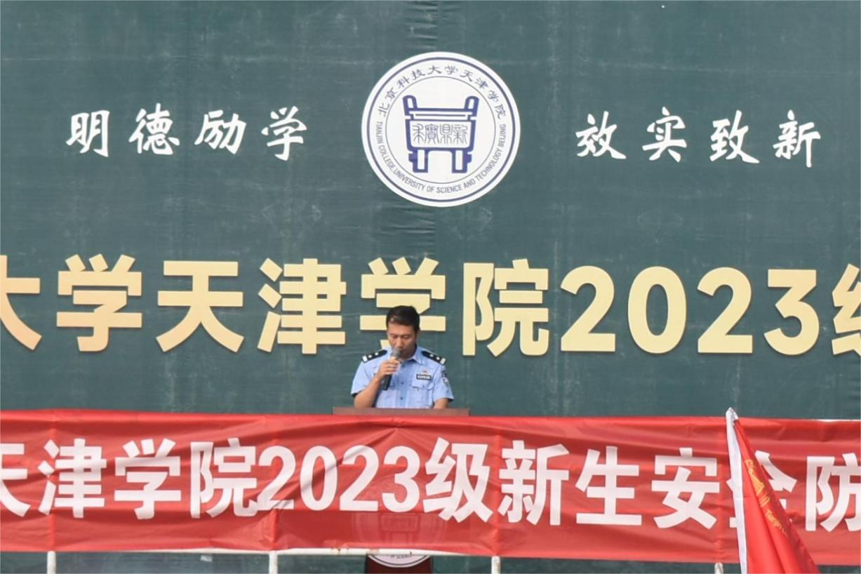 为帮助新生树立安全理念,提升安全防范意识,增强自我保护能力,9月16日上午,学院邀请京津新城派出所所长李立军警官、京津新城派出所民警丁玉东警官在学院西操场军训现场,为2023级4400余名新生开展安全防范知识专题讲座。